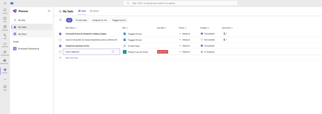 In today's dynamic business environment, where projects are becoming increasingly complex and teams often work remotely or in a hybrid model, effective task management is essential. Without the right tool, it's easy to lose track of deadlines, get lost in the maze of assigned responsibilities, or miss key dependencies between individual tasks. Chaos in project management translates directly into delays, team frustration and ultimately, unmet business goals. This is why choosing the right project management app is so crucial. The solution must be intuitive, flexible, and tailored to the needs of modern teams. This is where Microsoft Planner comes in – a tool that combines ease of use with powerful functionality, ideal for both small projects and larger team initiatives. Planner stands out from other solutions thanks to its native integration with the entire Microsoft 365 ecosystem – this means seamless collaboration with applications such as Microsoft Teams, Outlook and To Do. In the next article in our "#Top5" series, we'll look at the five best features of Microsoft Planner that will make project management simpler, more enjoyable and more transparent.