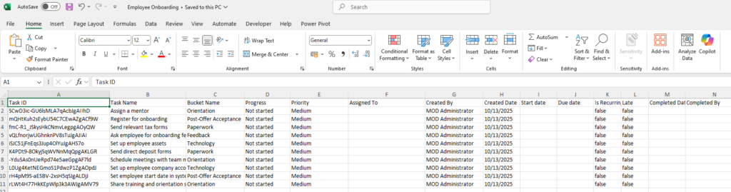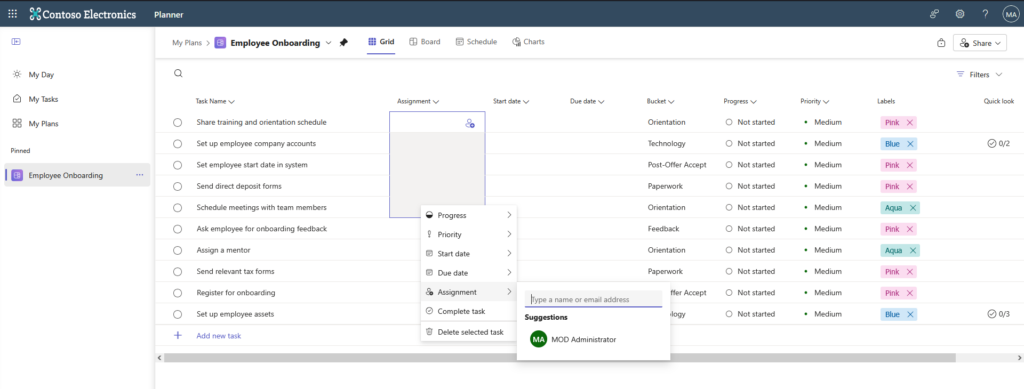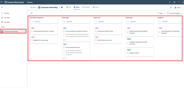 After a moment, your plan is ready. As you can see, it took Planner just a few moments to create a plan and define tasks that you can use or modify to suit your needs. However, you didn't have to create them from scratch.